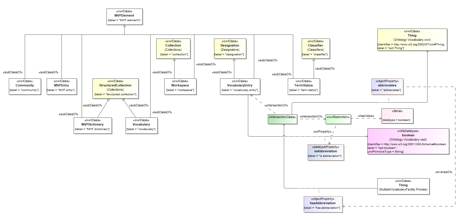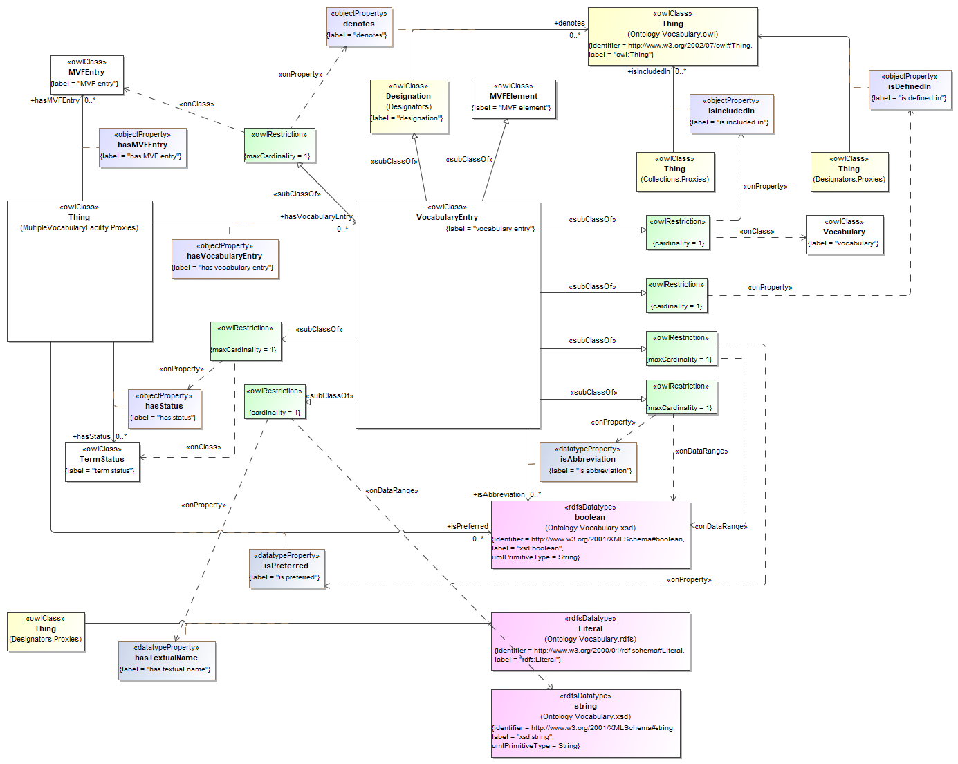 However hasVocabularyEntry is specifically for linking with a Vocabulary. If used to link an MVFEntry with its VocabularyEntries then the MVFEntry will get inferred to be a VOcabulary due to the following::