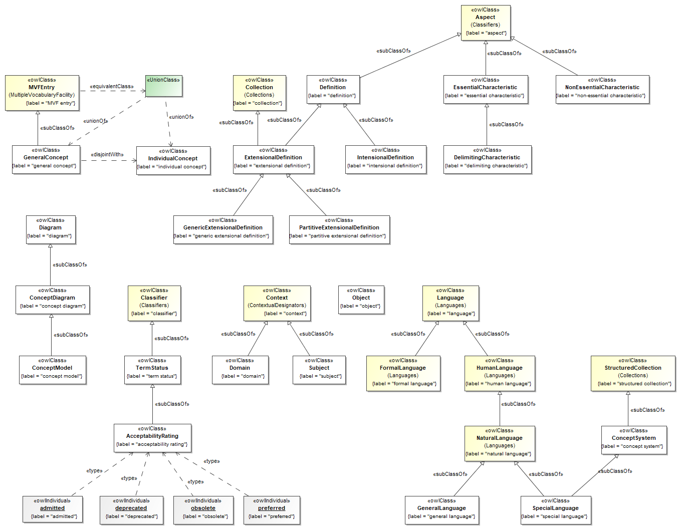 Currently the metamodel reflects SKOS-like relations such as broader and narrower, but more is needed for certain applications.