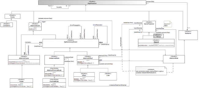 Sometimes the transition from one situation to another situation needs additional properties which cannot be captured by a simple association. The common solution for that is to use an association class to express causality allowing for additional properties to be added to the transition. This pattern is already used in the STPA method. The proposal is to create a general pattern so other methods can access this capability. This would include creating an association class on the common core Situation.